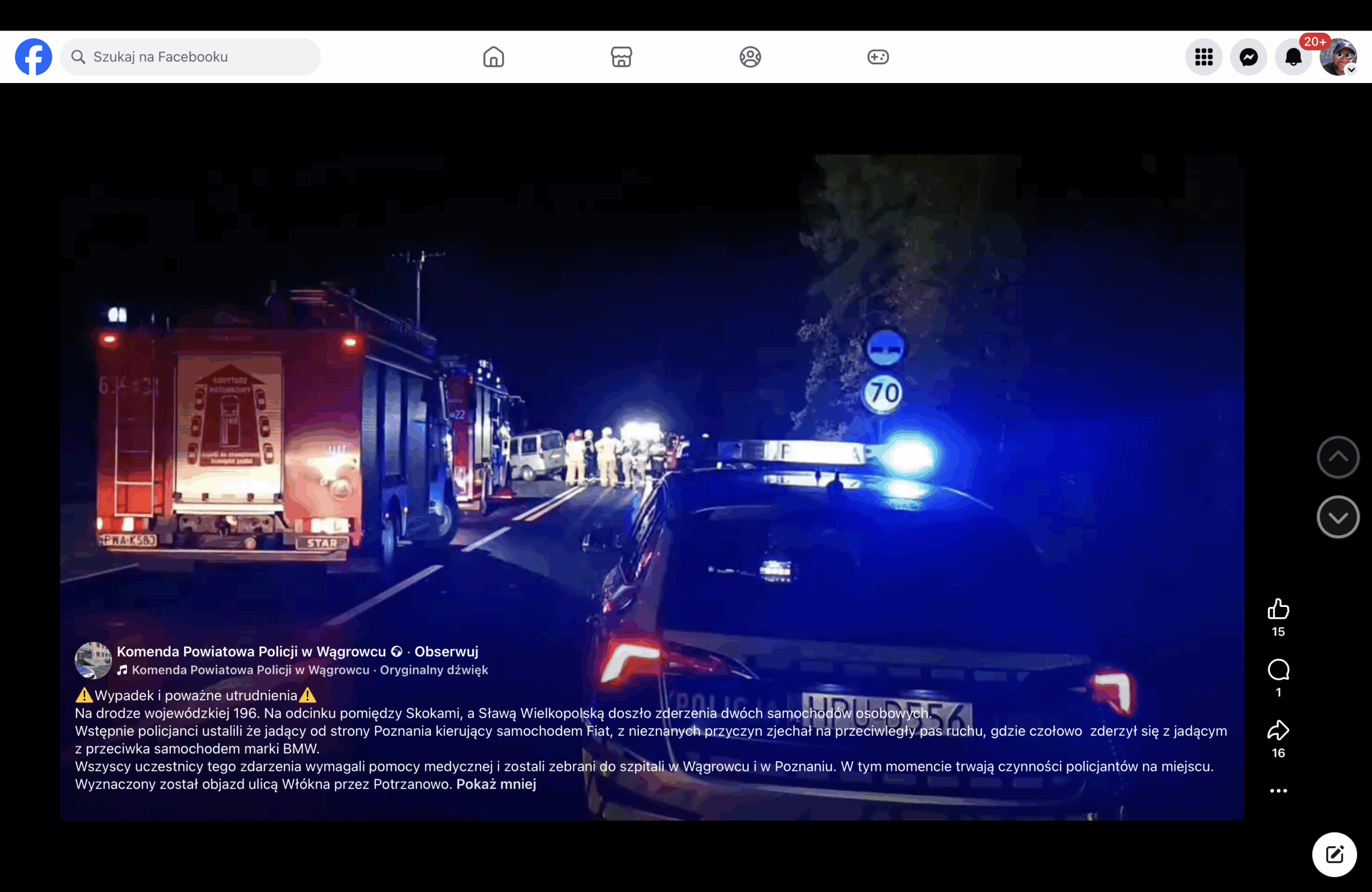 – Wstępnie policjanci ustalili, że jadący od strony Poznania kierujący samochodem Fiat, z nieznanych przyczyn zjechał na przeciwległy pas ruchu, gdzie czołowo zderzył się z jadącym z przeciwka samochodem marki BMW. Wszyscy uczestnicy tego zdarzenia wymagali pomocy medycznej i zostali zebrani do szpitali w Wągrowcu i w Poznaniu. W tym momencie trwają czynności policjantów na miejscu. Wyznaczony został objazd ulicą Włókna przez Potrzanowo – ostrzegają policjanci.
