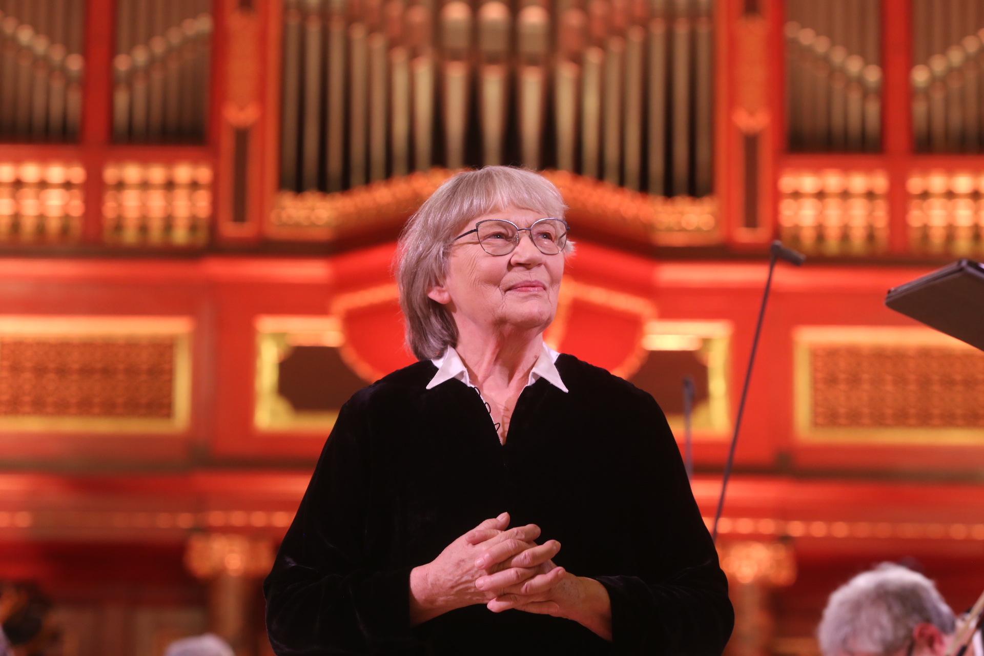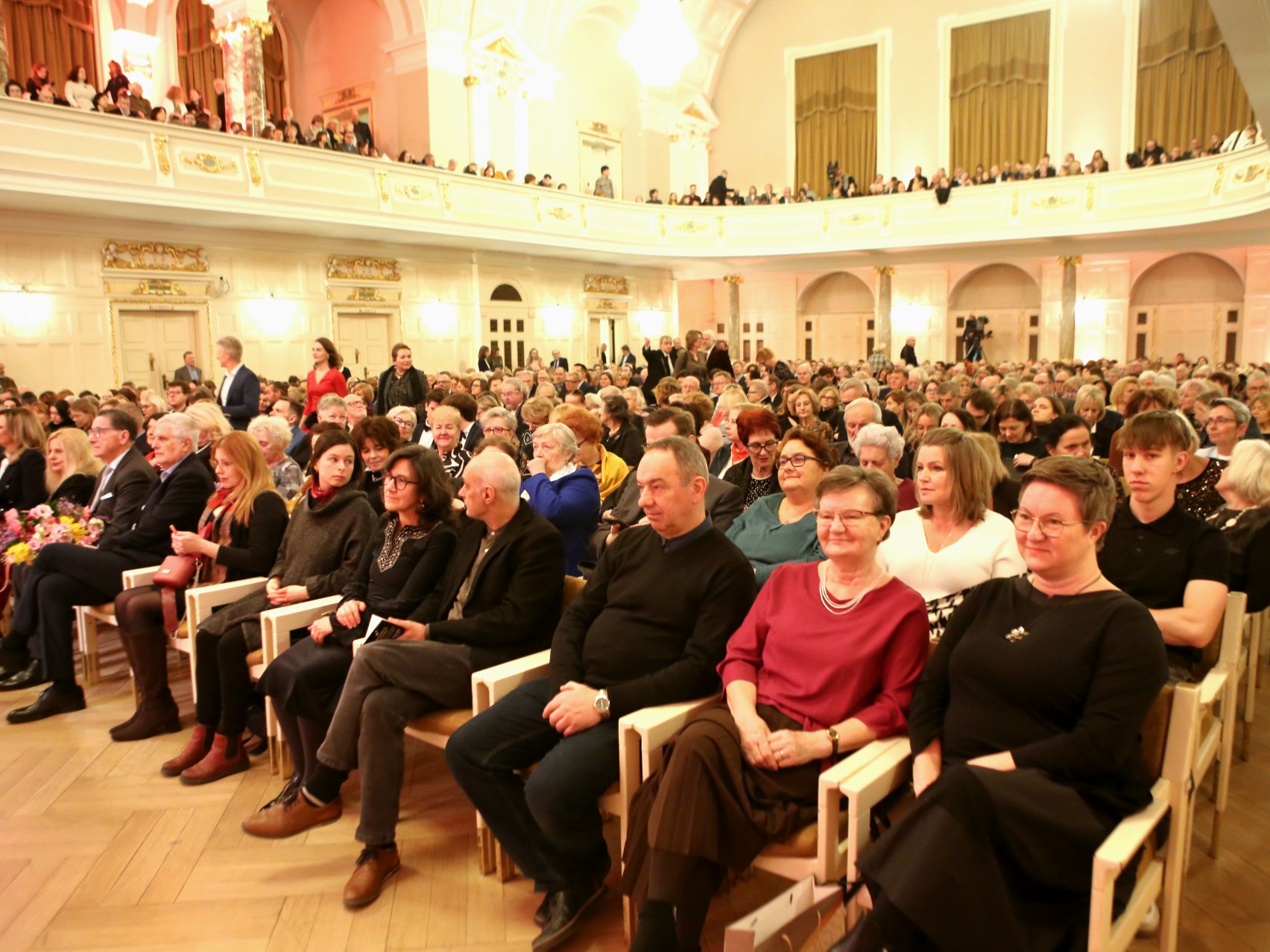 Na sam koniec wybrzmiał jeszcze jeden utwór w wykonaniu orkiestry, ale bez udziału Agnieszki Duczmal, za to przy wsparciu szczelnie wypełniającej Aulę UAM widowni. Cała sala odśpiewała wybitnej Poznaniance „Sto lat”.