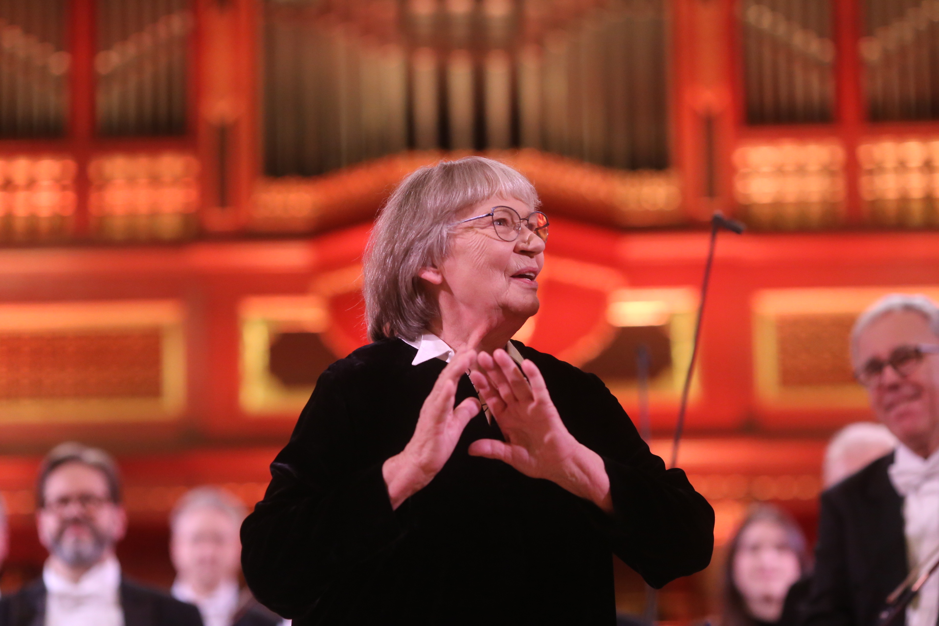 Laudacje na cześć szanownej jubilatki składali m.in reprezentująca zarząd województwa Katarzyna Kretkowska oraz wiceprezydent Poznania Jędrzej Solarski. Potem rozbrzmiała muzyka. Najpierw Orkiestra Kameralna Polskiego Radia Amadeus pod batutą maestry zagrała 33 utwory Johanna Sebastiana Bacha, by podsumować wieczór Walcem Mefisto Fernca Liszta. Utworem, jak sama dyrygent zwróciła uwagę dość upiornym, ale ten nie znalazł się w programie przez przypadek. Żartowała, że wybrała go właśnie z okazji swoich urodzin.