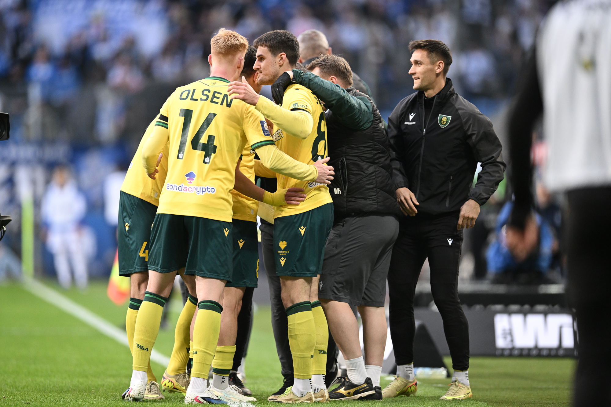 Od pierwszych minut to goście narzucili warunki gry. Wysoki pressing, szybkie przejścia do ataku i groźne stałe fragmenty – GKS Katowice wyglądał na zespół świeższy, mimo że kilka dni wcześniej rozegrał wyczerpujący mecz w Pucharze Polski.