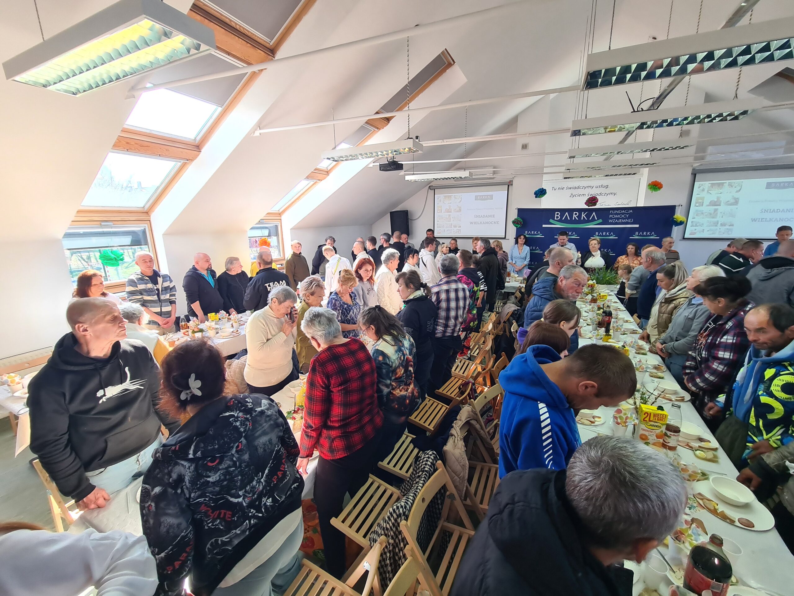 Śniadanie Wielkanocne w Barce zgromadziło około 250 osób potrzebujących i samotnych. Według organizatorów wspólne spotkanie przy stole było nie tylko okazją do posiłku, ale przede wszystkim do budowania wspólnoty, nadziei i poczucia bliskości w świątecznym czasie.