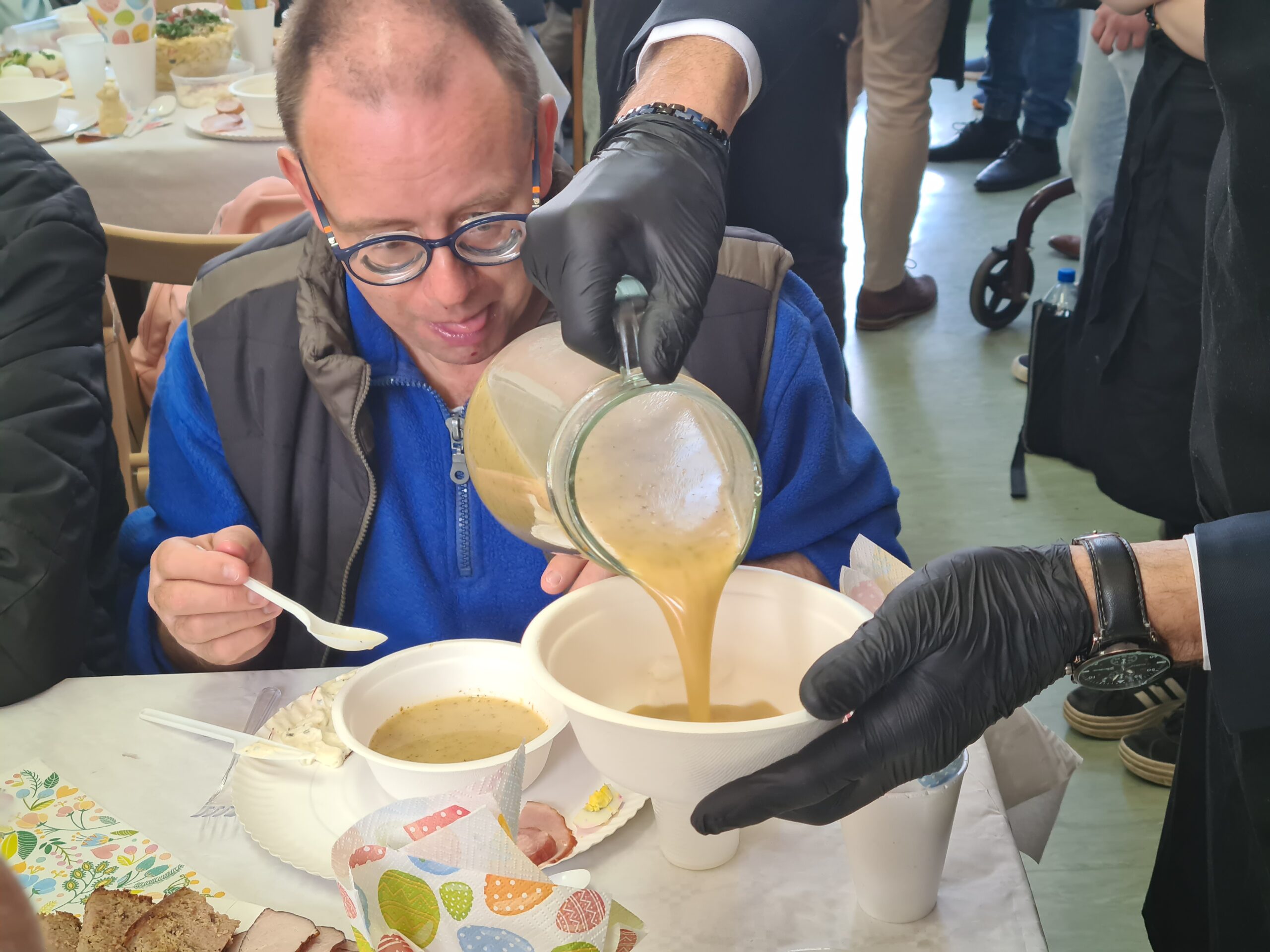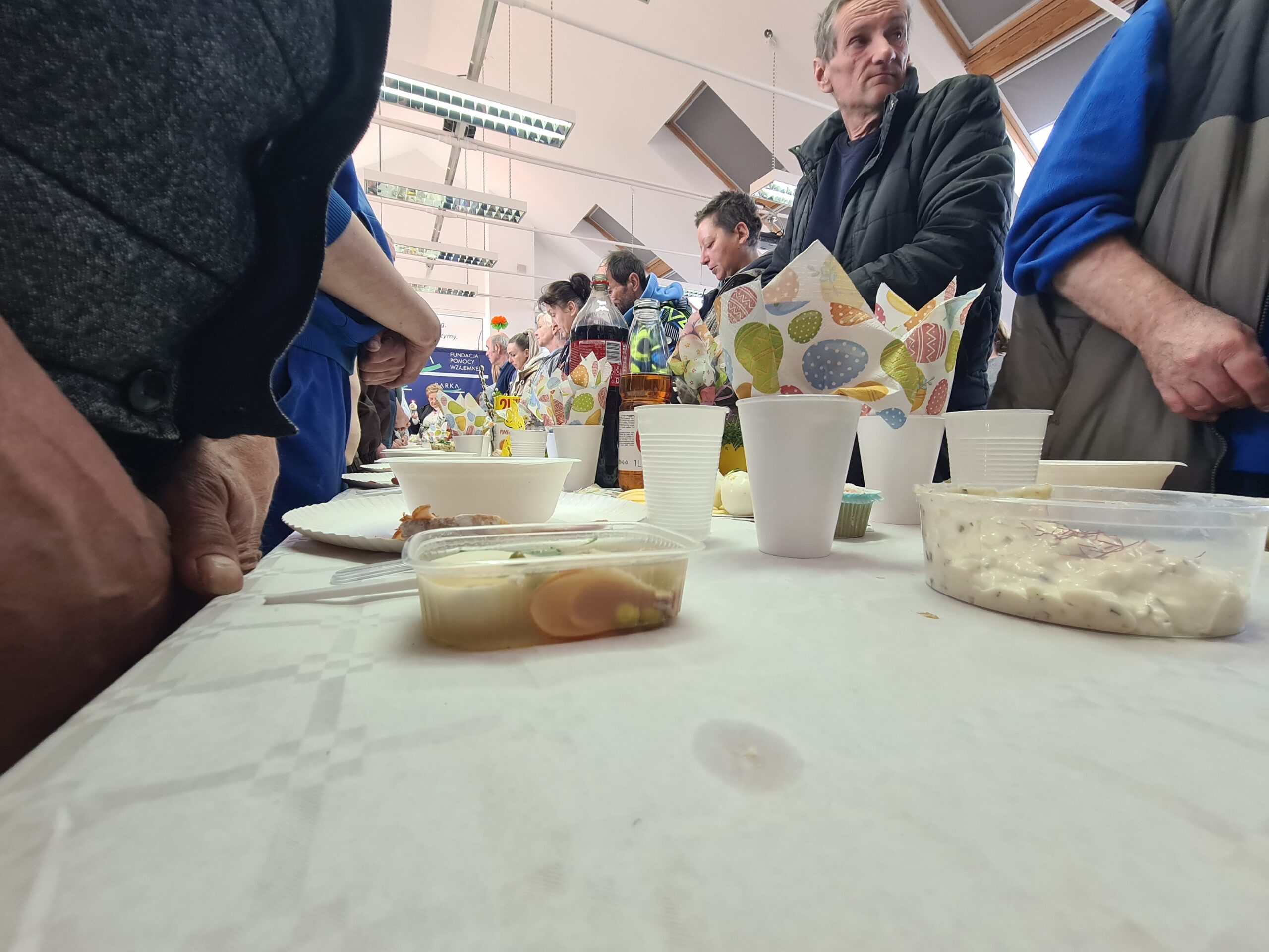 Na uczestników czekały tradycyjne potrawy wielkanocne między innymi żurek, jajka, sałatki, biała kiełbasa, pasztety i ciasta. Wszystko zostało przygotowane dzięki zaangażowaniu wolontariuszy, darczyńców oraz społeczności fundacji, która od lat tworzy przestrzeń otwartości i solidarności.
