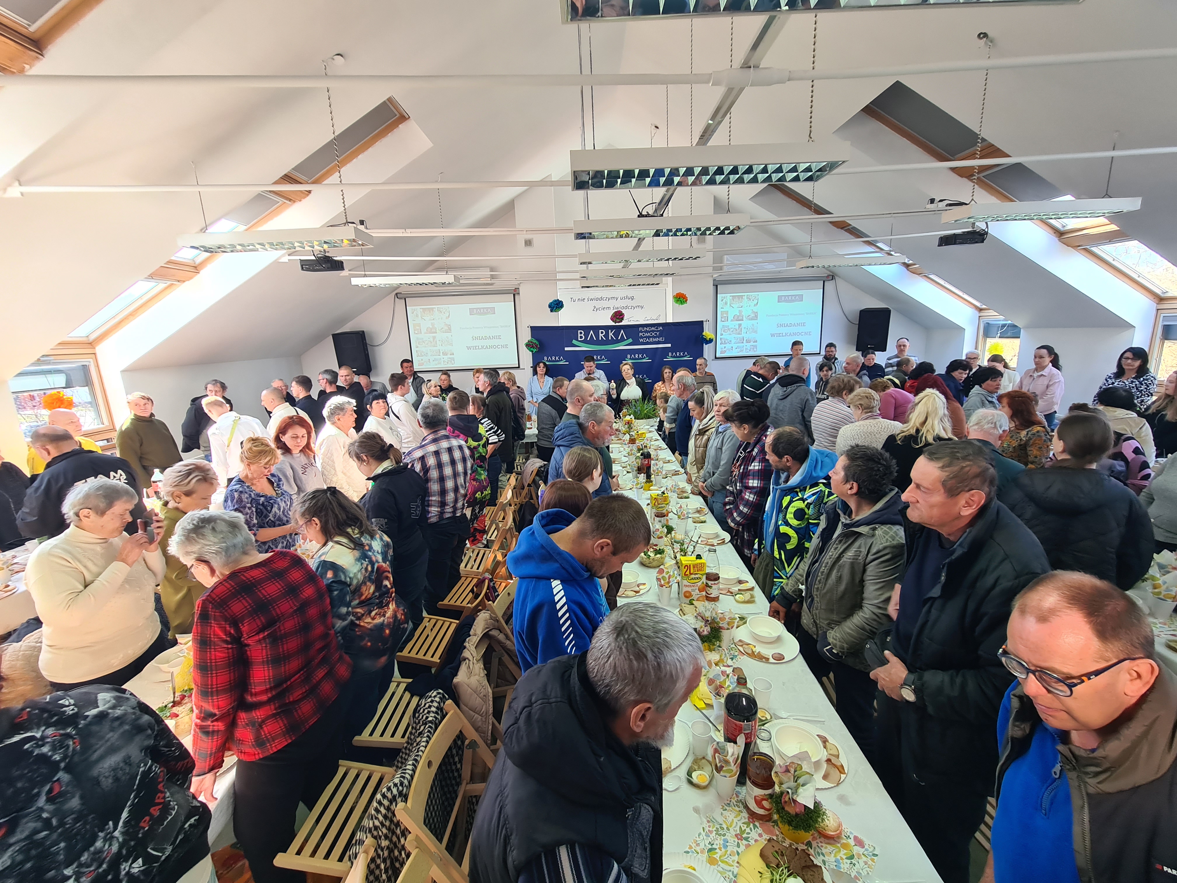 Śniadanie Wielkanocne w Barce zgromadziło około 250 osób potrzebujących i samotnych. Według organizatorów wspólne spotkanie przy stole było nie tylko okazją do posiłku, ale przede wszystkim do budowania wspólnoty, nadziei i poczucia bliskości w świątecznym czasie.