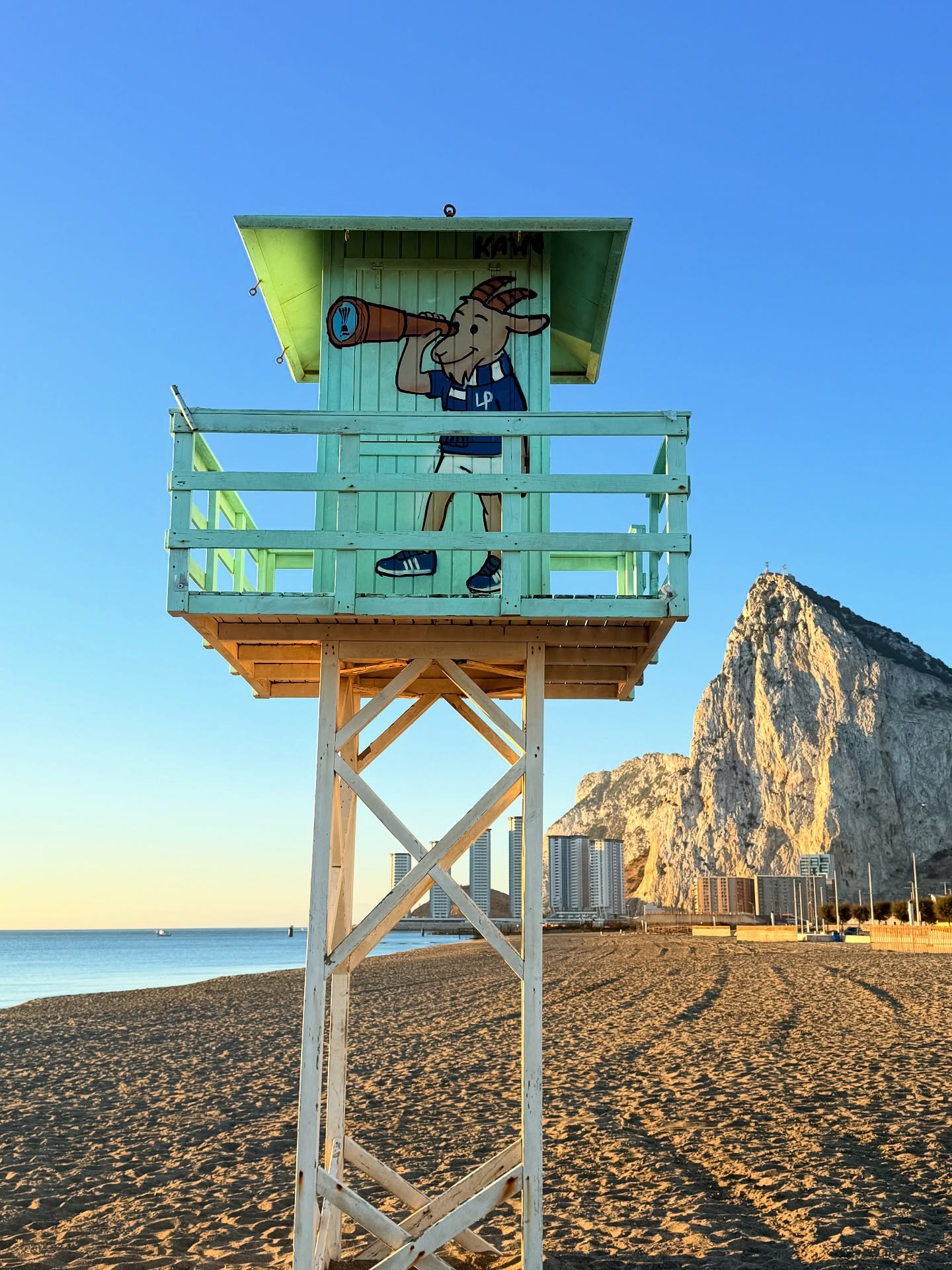 Graffiti w wykonaniu poznaniaka pojawiło się na plaży w okolicy stadionu, na którym rozegra się mecz Lecha Poznań oraz Lincoln Red Imps. Spotkanie odbywa się w ramach Ligi Konferencji. Jeden z koziołków, znajdujący się na wieżyczce, spogląda przez lunetę. W szkle instrumentu optycznego widać puchar, o który rywalizuje poznańska drużyna.