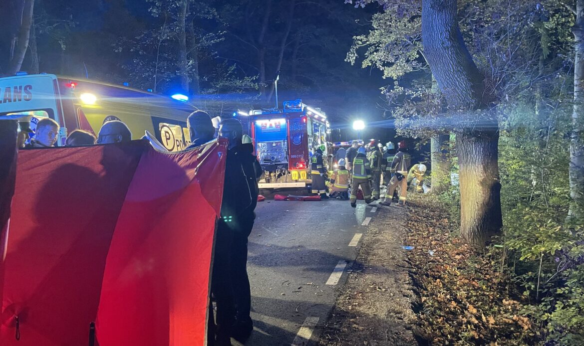 Pięć osób trafiło do szpitala po nocnym wypadku na trasie między Perzynami a Nową Wsią Zbąską. Samochód osobowy wypadł z drogi i uderzył w drzewo.