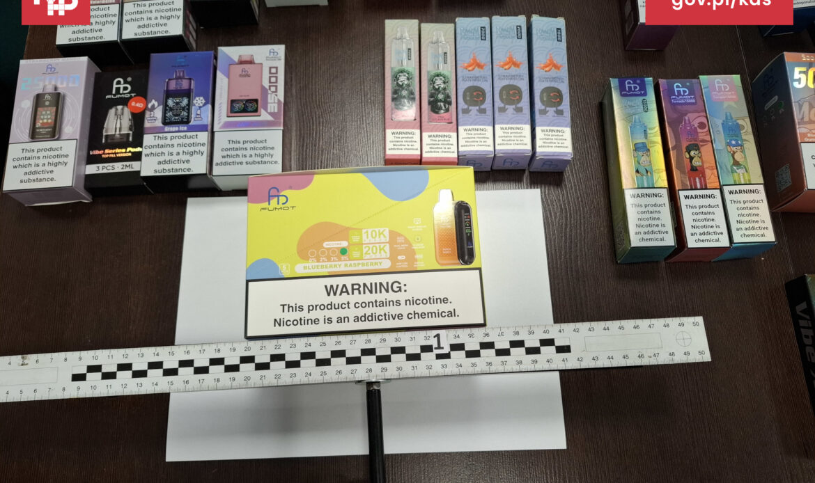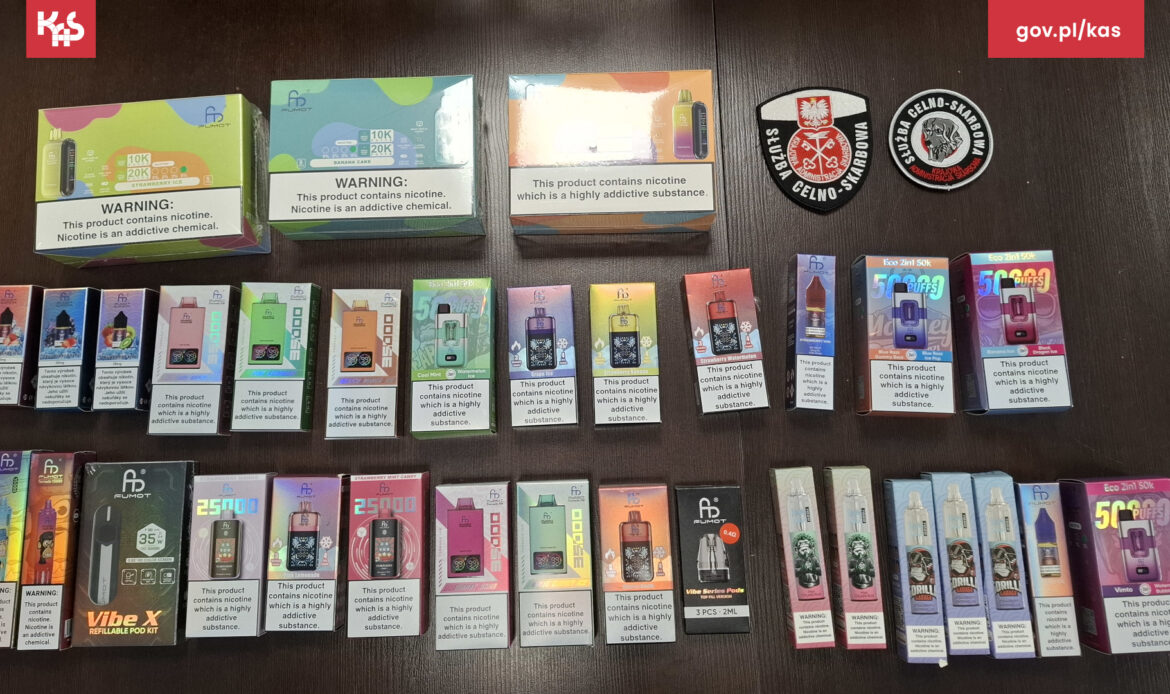 Ponad 50 litrów nielegalnych płynów do e-papierosów oraz tysiące innych wyrobów akcyzowych przechwycili funkcjonariusze Krajowej Administracji Skarbowej w Wielkopolsce. Do kontroli doszło w jednej z sortowni kurierskich, gdzie przesyłki miały trafić do odbiorców na terenie kraju. Szacunkowa wartość zabezpieczonego towaru to ponad 250 tysięcy złotych.