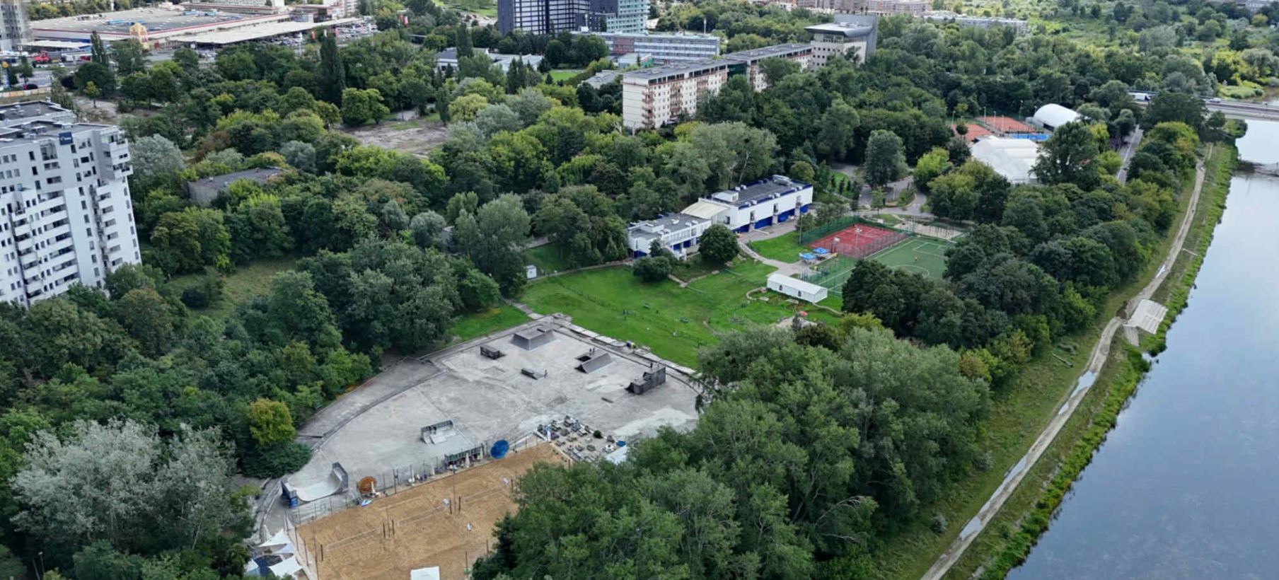 Zadaszenie kompleksu będzie miało niemal 1,9 tys. m², a jego wysokość sięgnie 14 metrów. Zaplanowano również zaplecze z szatniami, sanitariatami oraz kawiarnię. Zakres prac obejmuje także budowę dróg technicznych i pieszych, schodów z rampą od strony Wartostrady, stojaków rowerowych oraz pełne przystosowanie obiektu dla osób z niepełnosprawnościami.