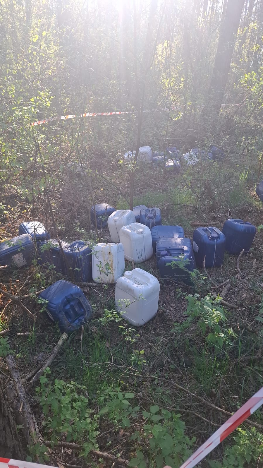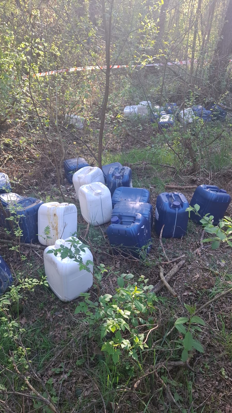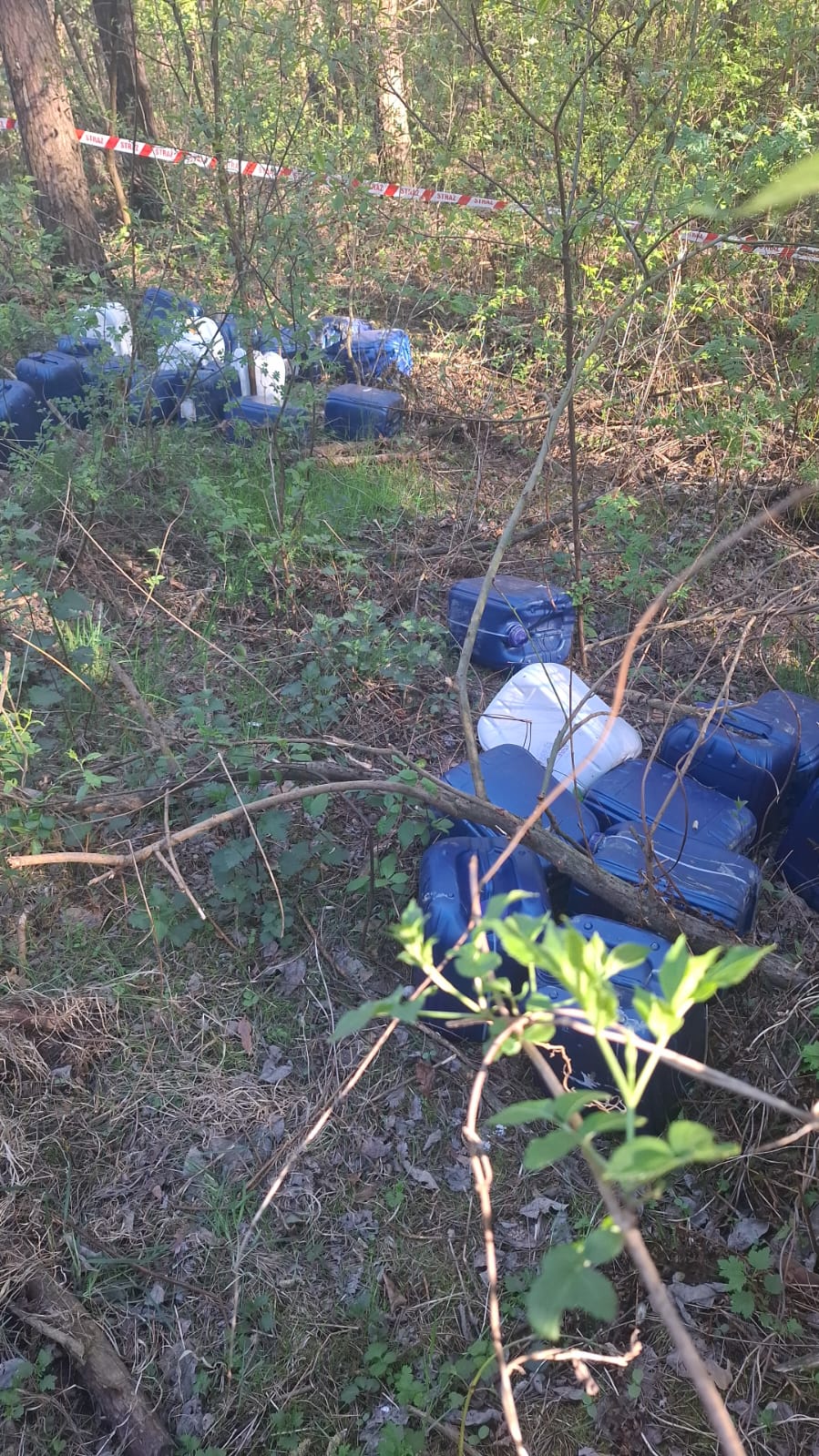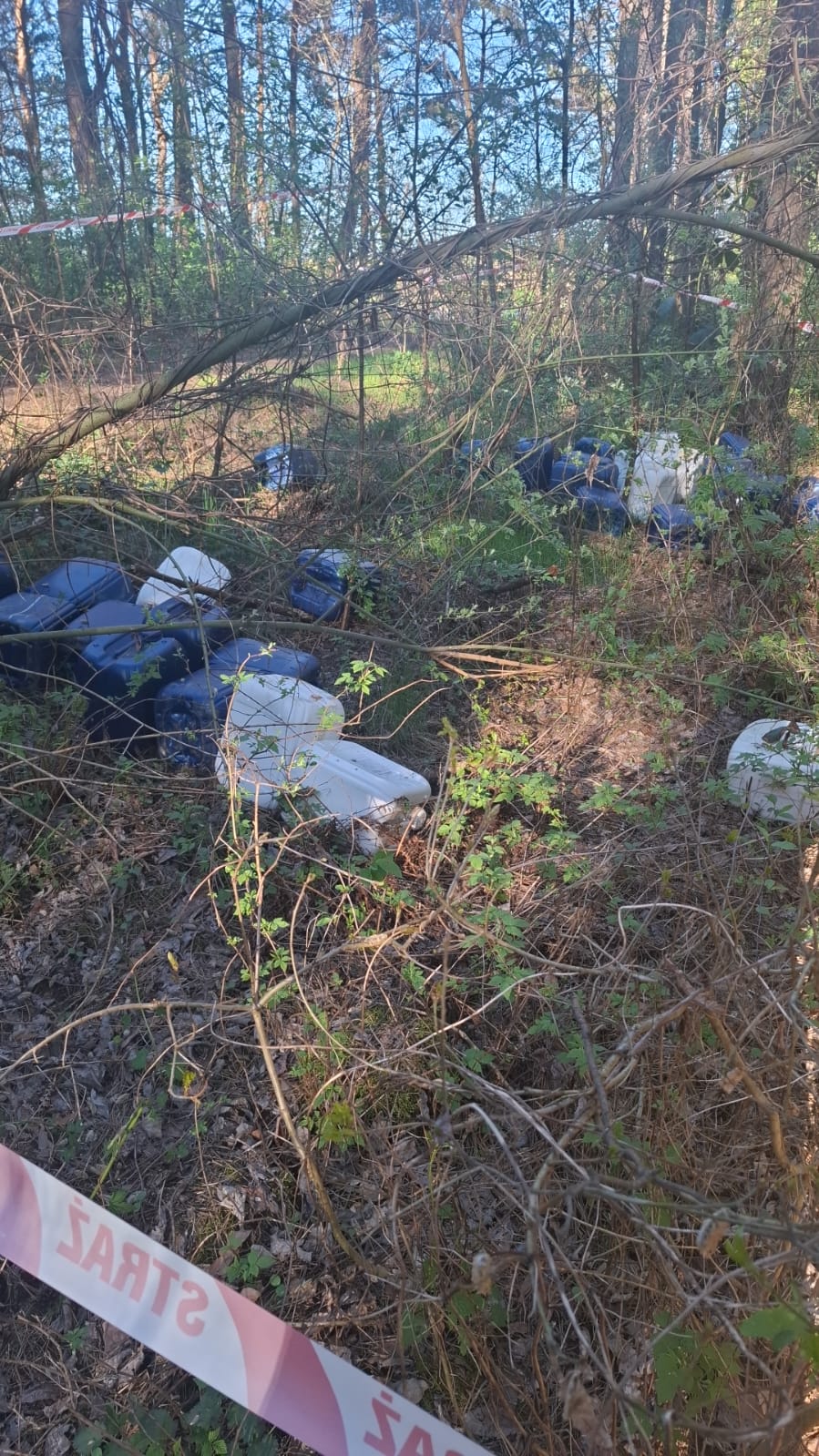 Ponad 600 litrów rozpuszczalników rozrzuconych w lesie [ZDJĘCIA]