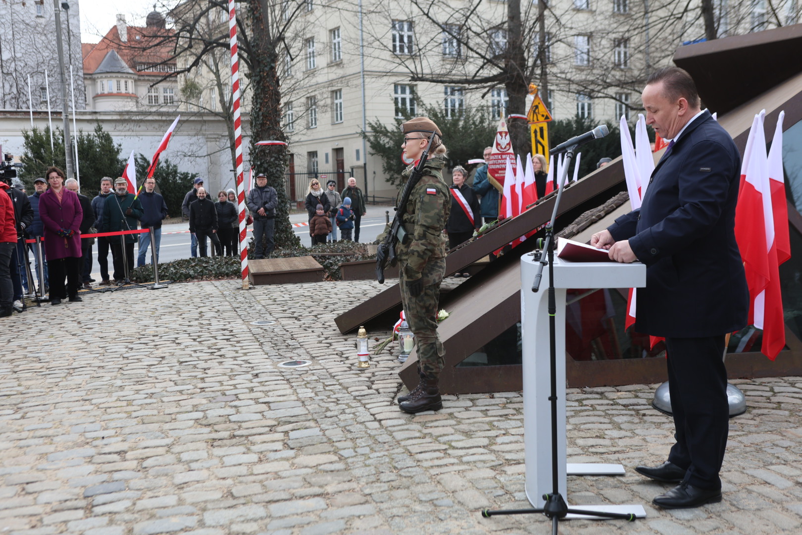 Głos zabrał również prezes Wielkopolskiego Stowarzyszenia Upamiętnienia Żołnierzy Wyklętych Maciej Wiśniewski, który apelował o pielęgnowanie pamięci historycznej i wyciąganie wniosków z przeszłości. Podczas uroczystości delegacje złożyły kwiaty i zapaliły znicze przed Pomnikiem Polskiego Państwa Podziemnego.