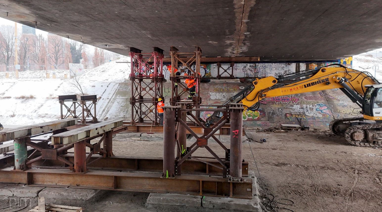 – Na placu budowy stawiane są podpory tymczasowe, które umożliwią demontaż starej konstrukcji. Obiekt będzie rozbierany stopniowo, z zachowaniem szczególnej ostrożności w celu zapewnienia bezpieczeństwa użytkowników sąsiedniej części, a także z troską o ekosystem rzeki Warty – mówi Tomasz Płóciniczak, wiceprezes zarządu spółki Poznańskie Inwestycje Miejskie.