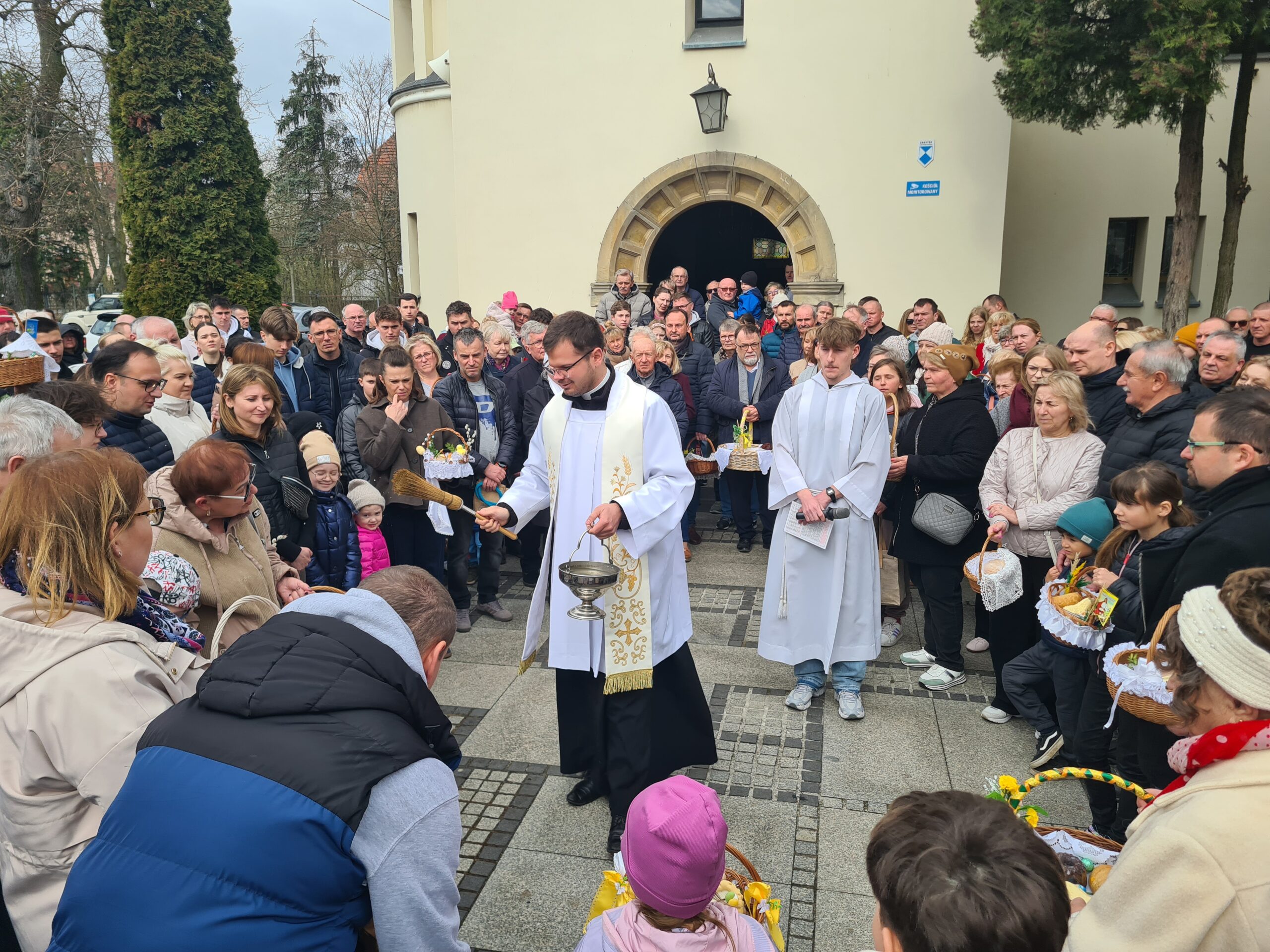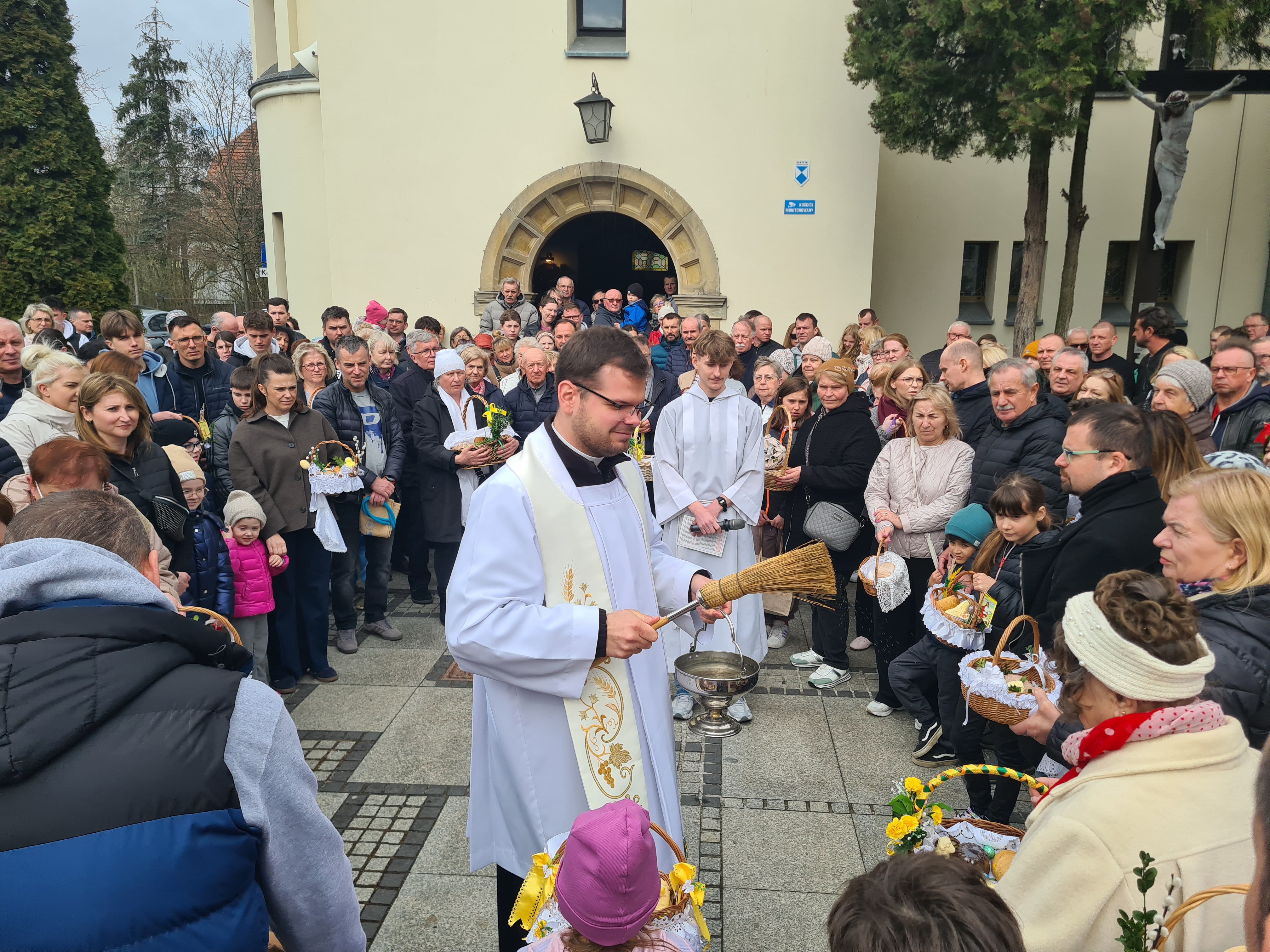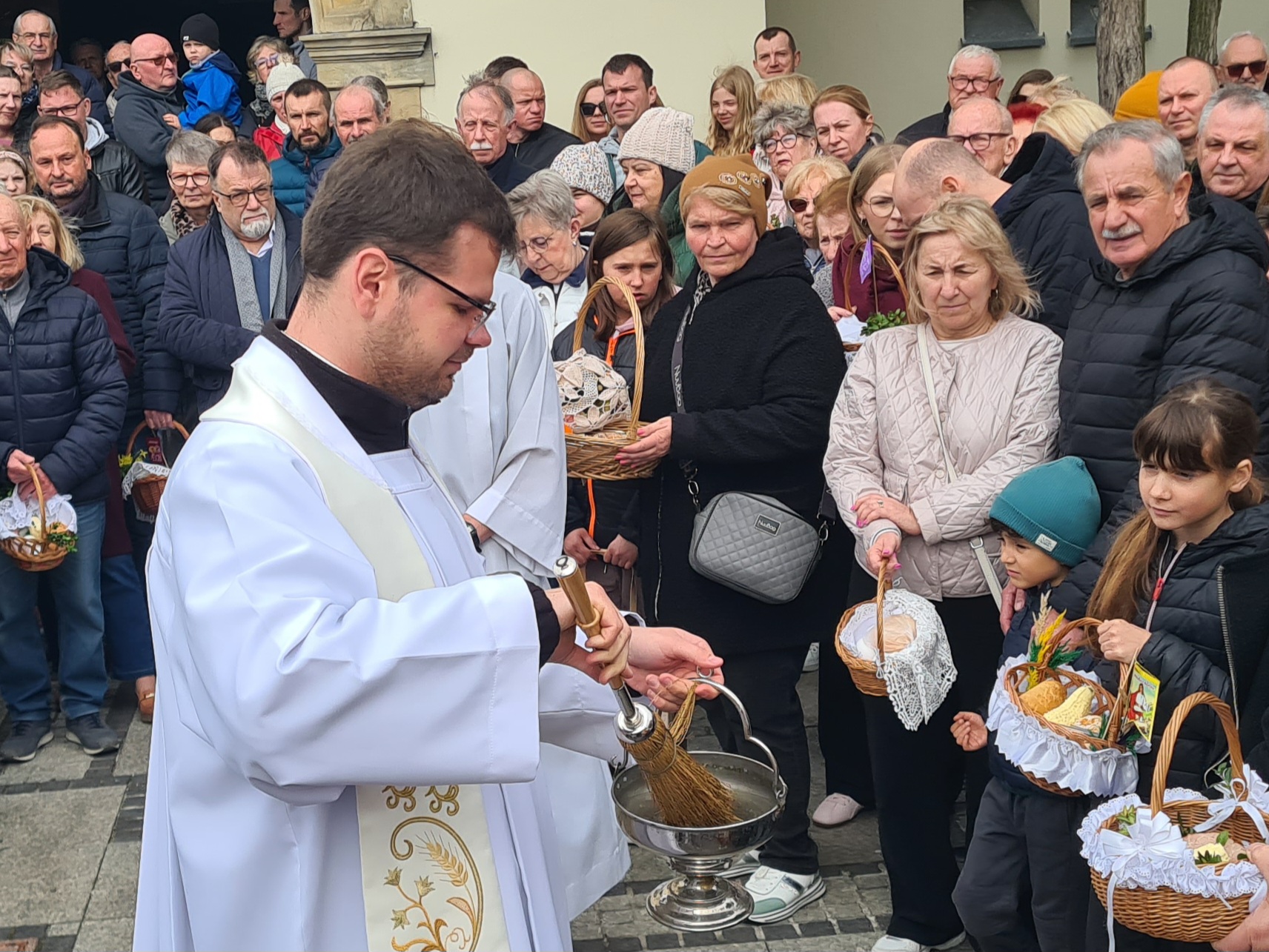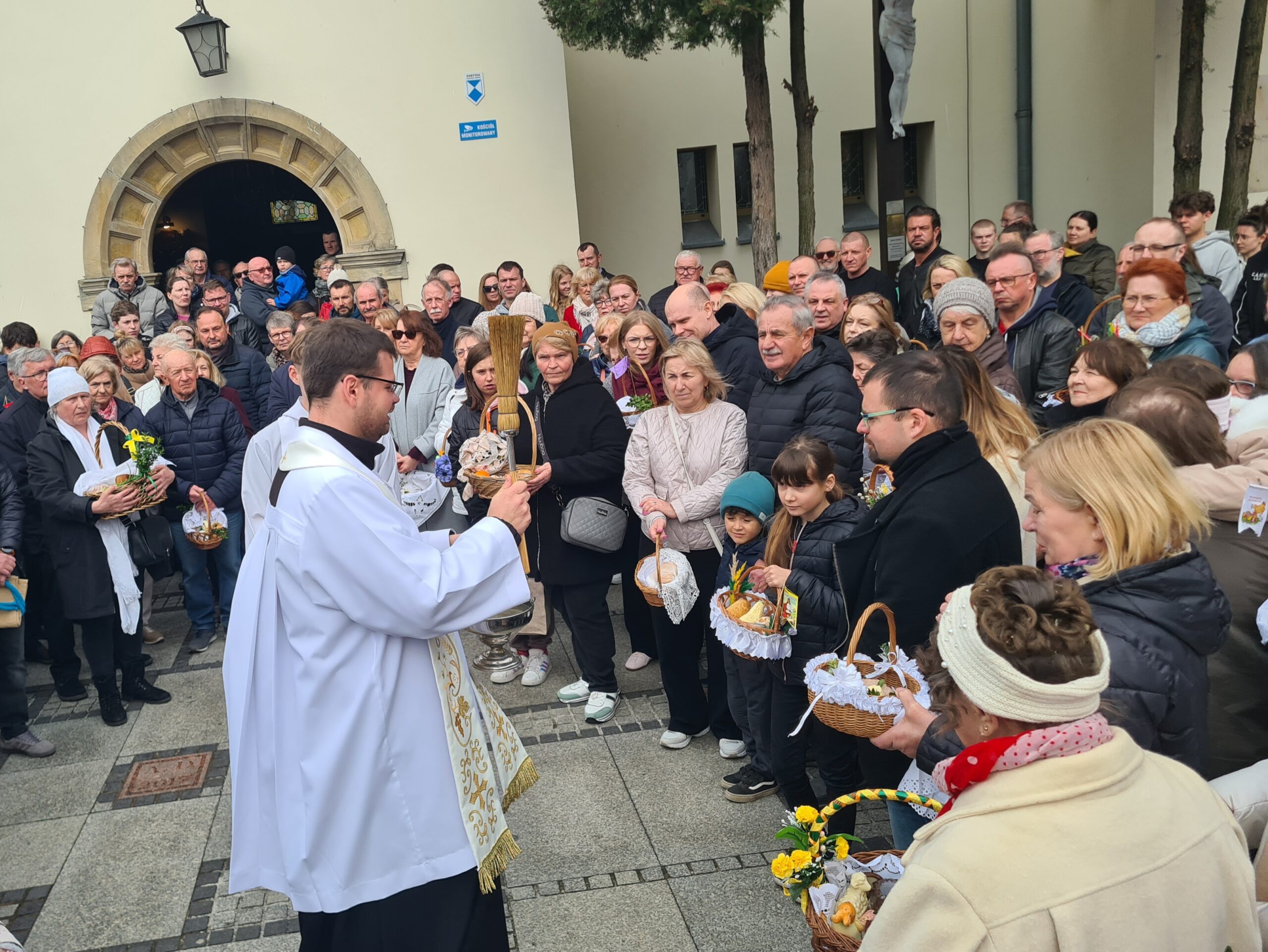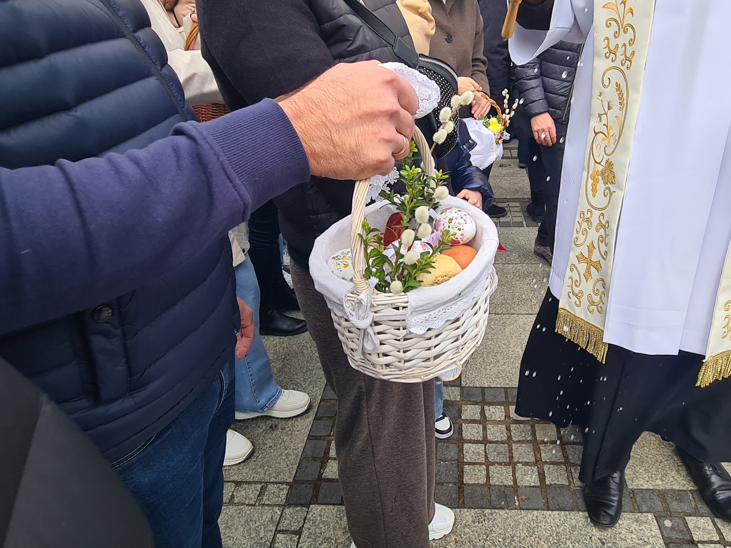 Wielka Sobota wraz ze święceniem pokarmów jest jedną z najsilniej zakorzenionych a przede wszystkim lubianych przez dzieci tradycji. Poznaniacy od rana biorą udział w święceniu pokarmów. Korzystając momentami z nawet słonecznej pogody księża święcą pokarmy przed świątyniami. Tak było np. o godz. 11 w lubońskim kościele pw. św. Barbary, gdzie nasz fotoreporter zrobił zdjęcia.