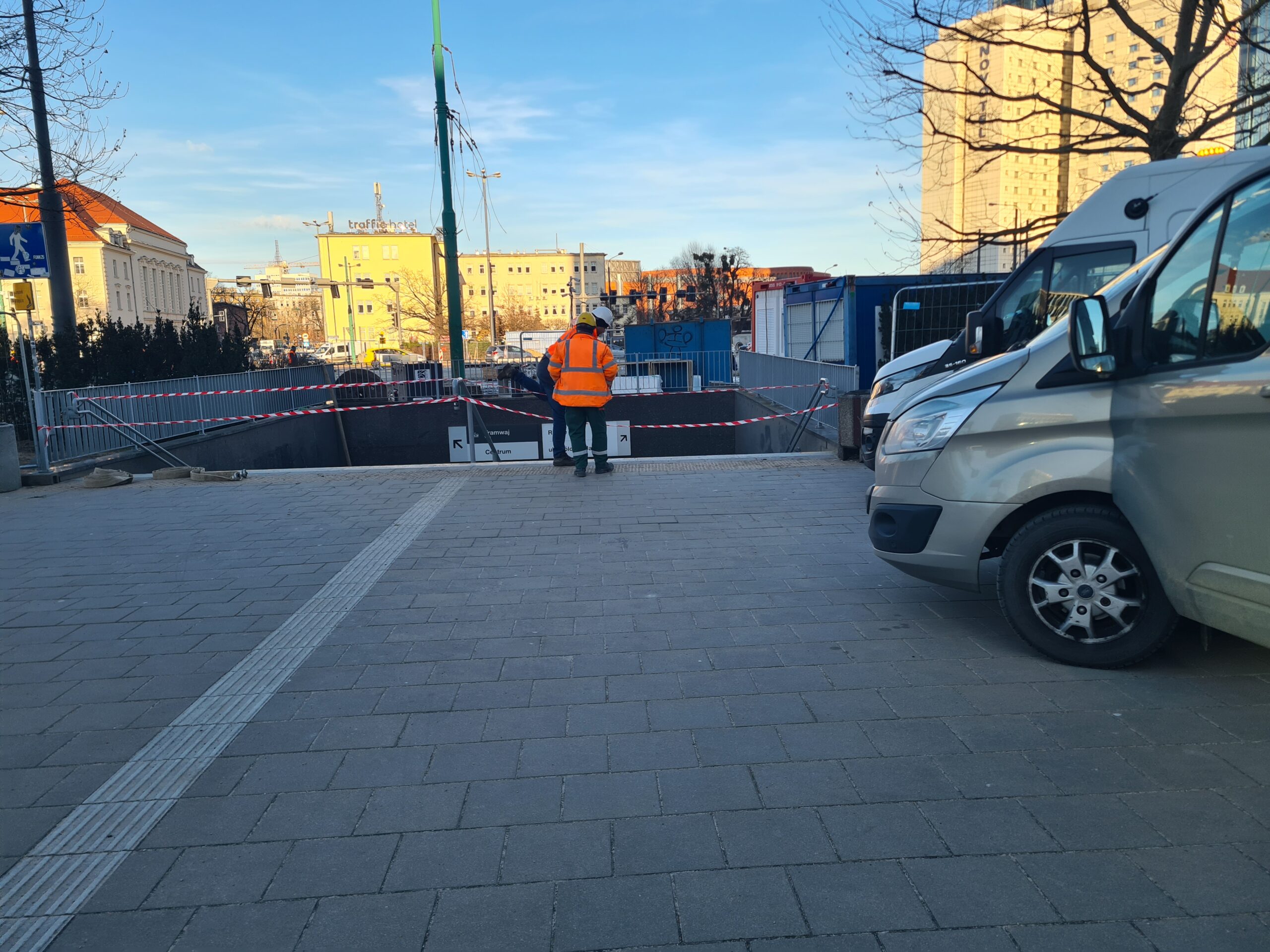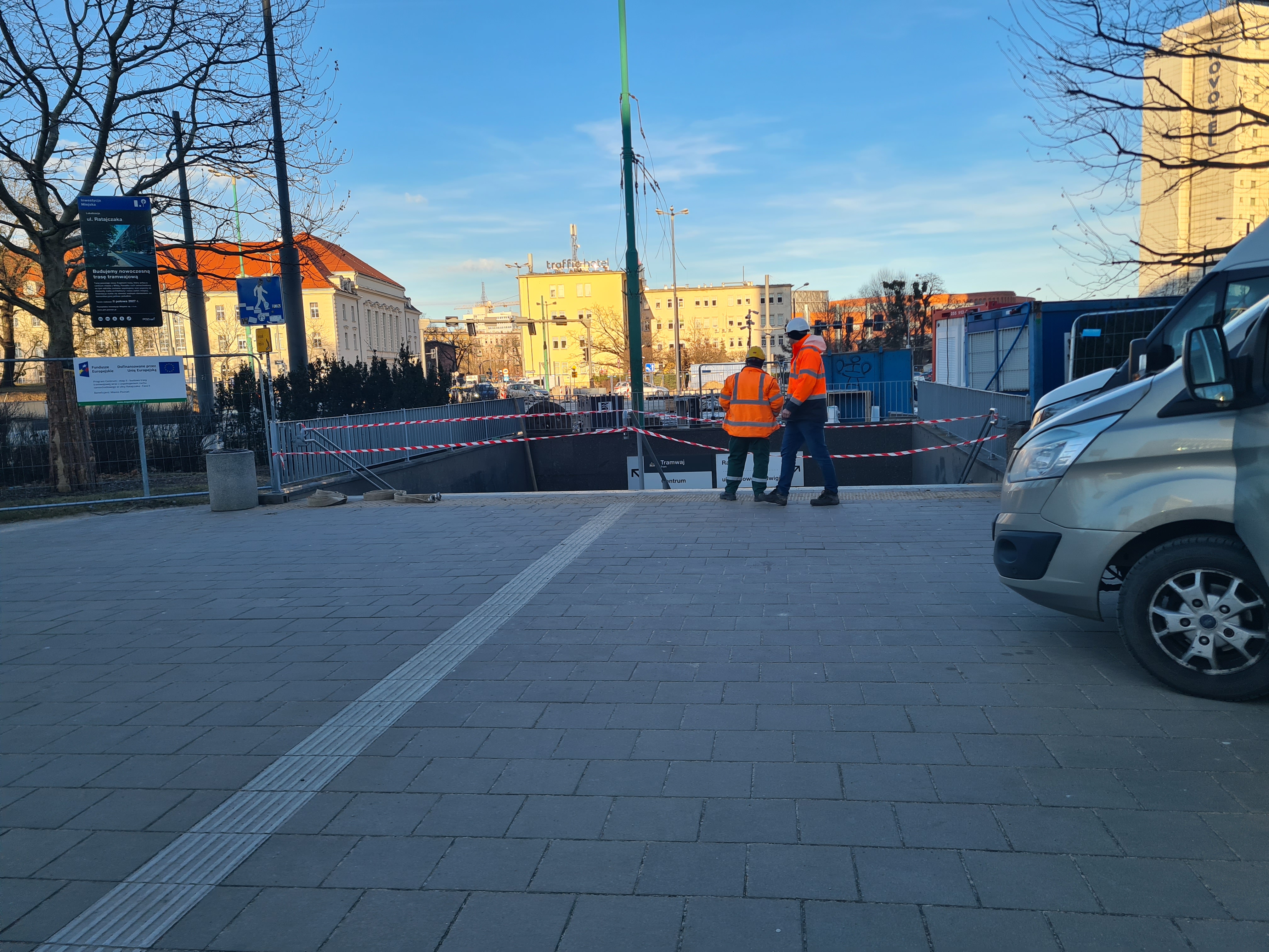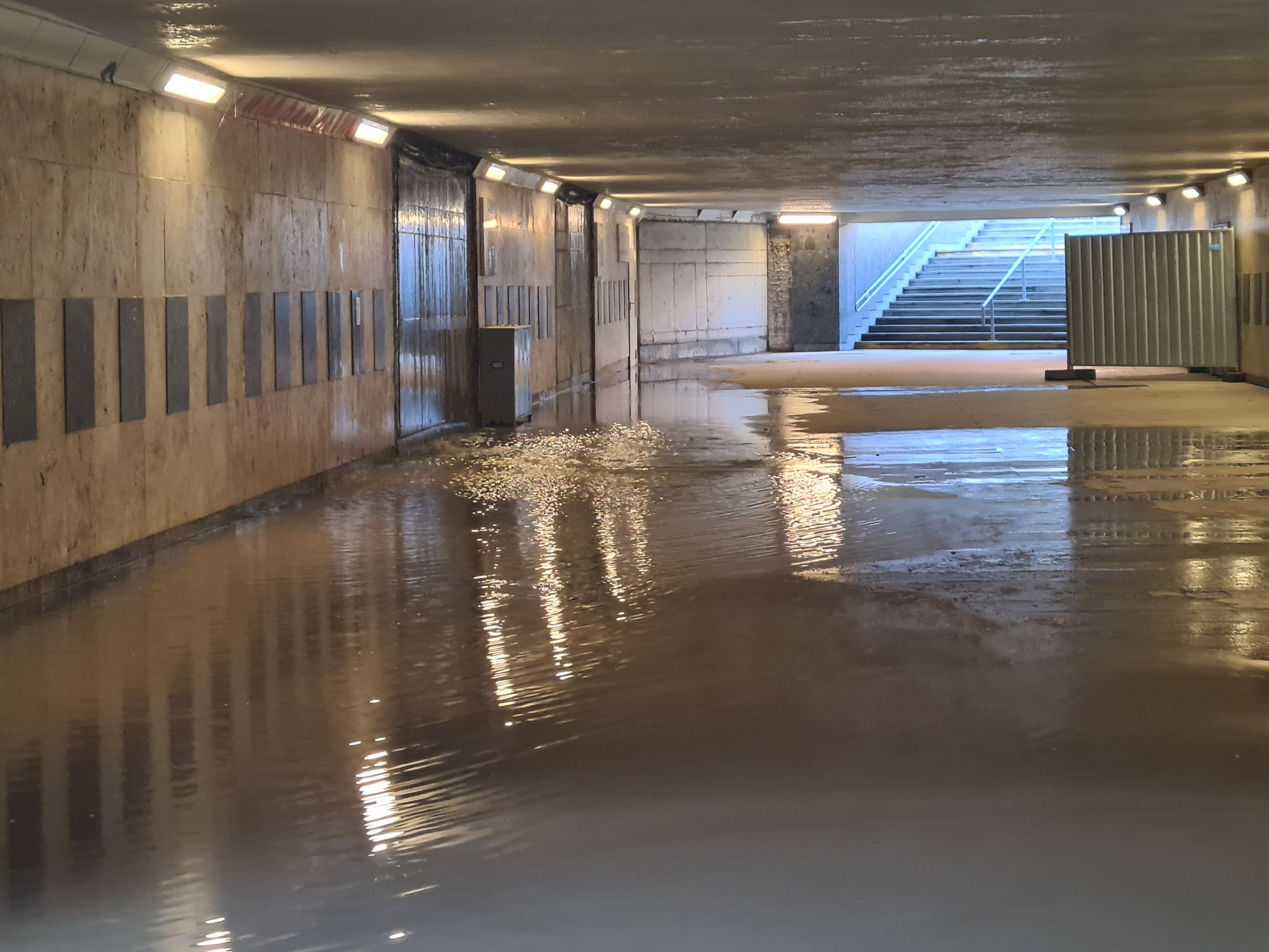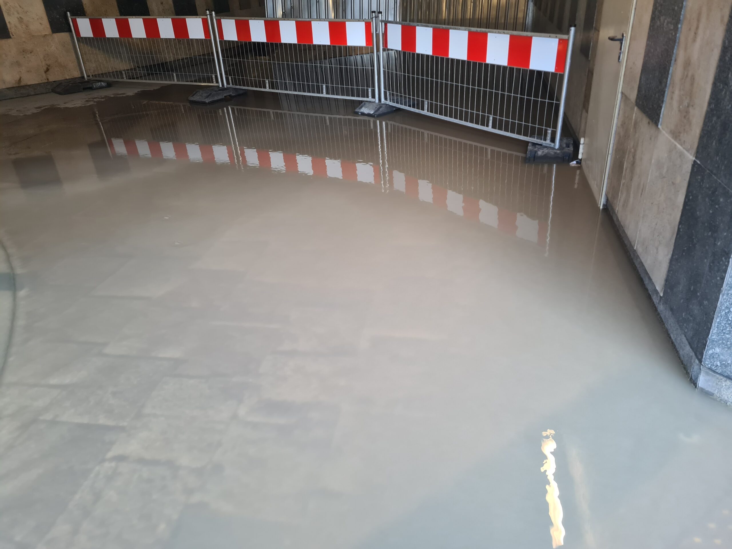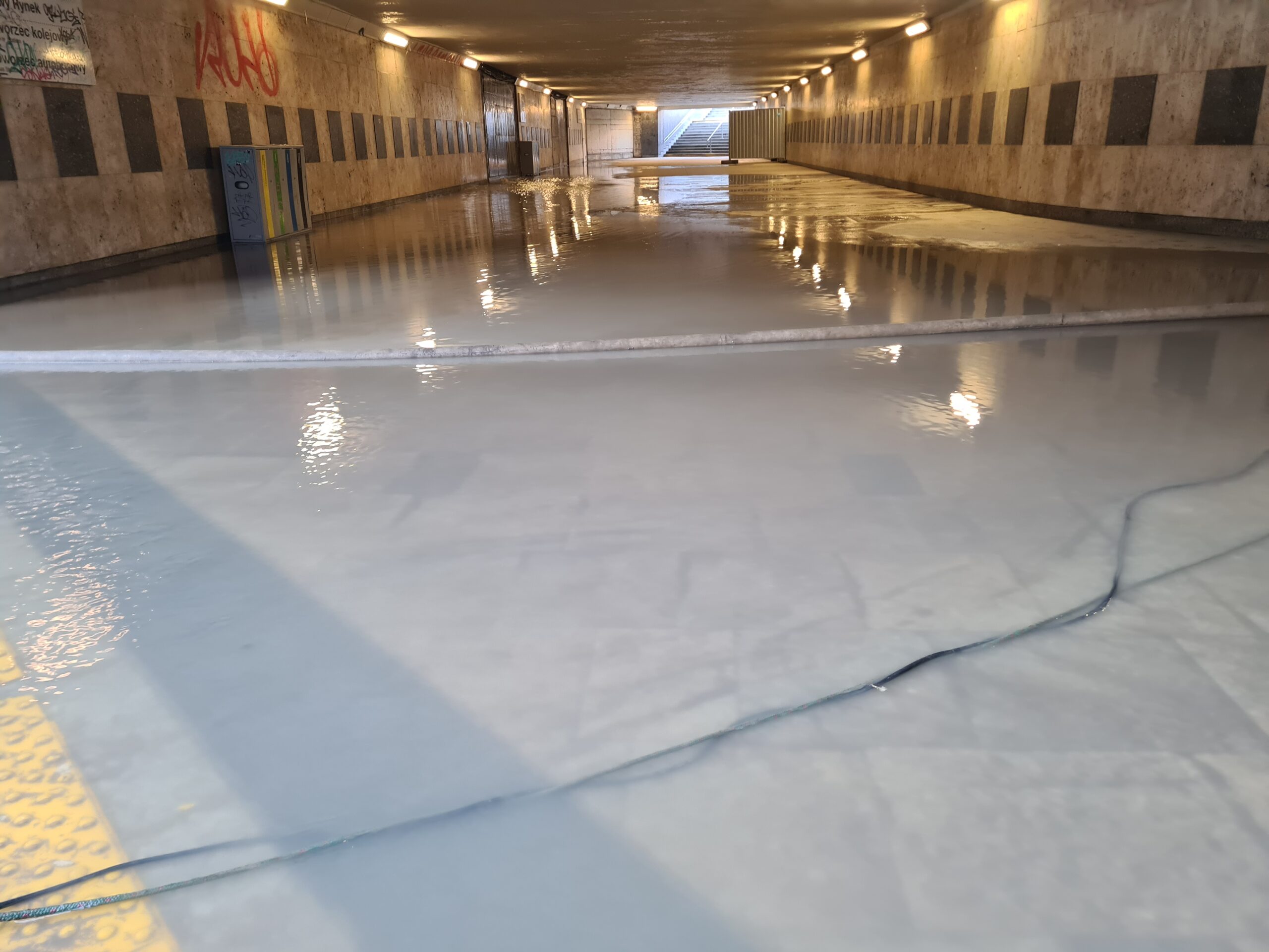 Na budowie w centrum Poznania pękła rura. Zalało całą okolicę i przejście podziemne.