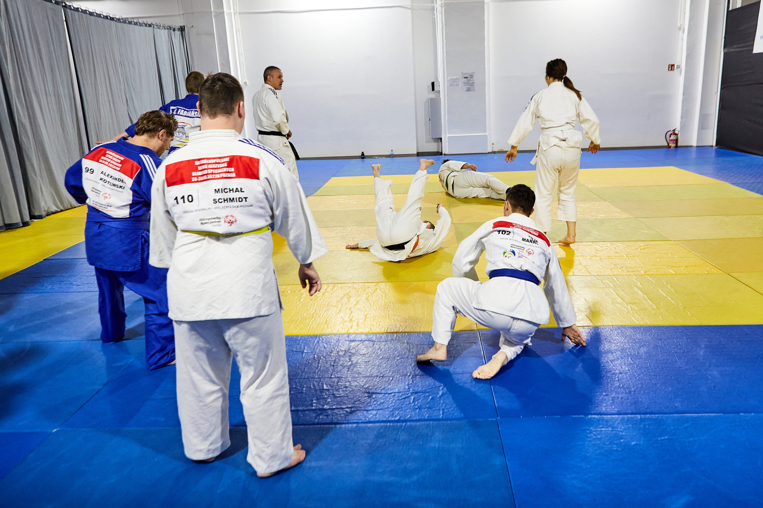 Jak dodaje trener, są też pewne zasadnicze różnice, związane z przepisami w judo. W ramach Olimpiad Specjalnych, w których startują osoby z niepełnosprawnościami z poznańskiej sekcji, zabronione są niektóre rodzaje technik, takie jak rzuty, poświęcenia, w których się układa samemu na plecy albo kładzie się na przeciwnika. Zabronione są dźwignie i duszenia. Pozostałych technik naucza się dokładnie tak samo jak w grupach bez niepełnosprawności.