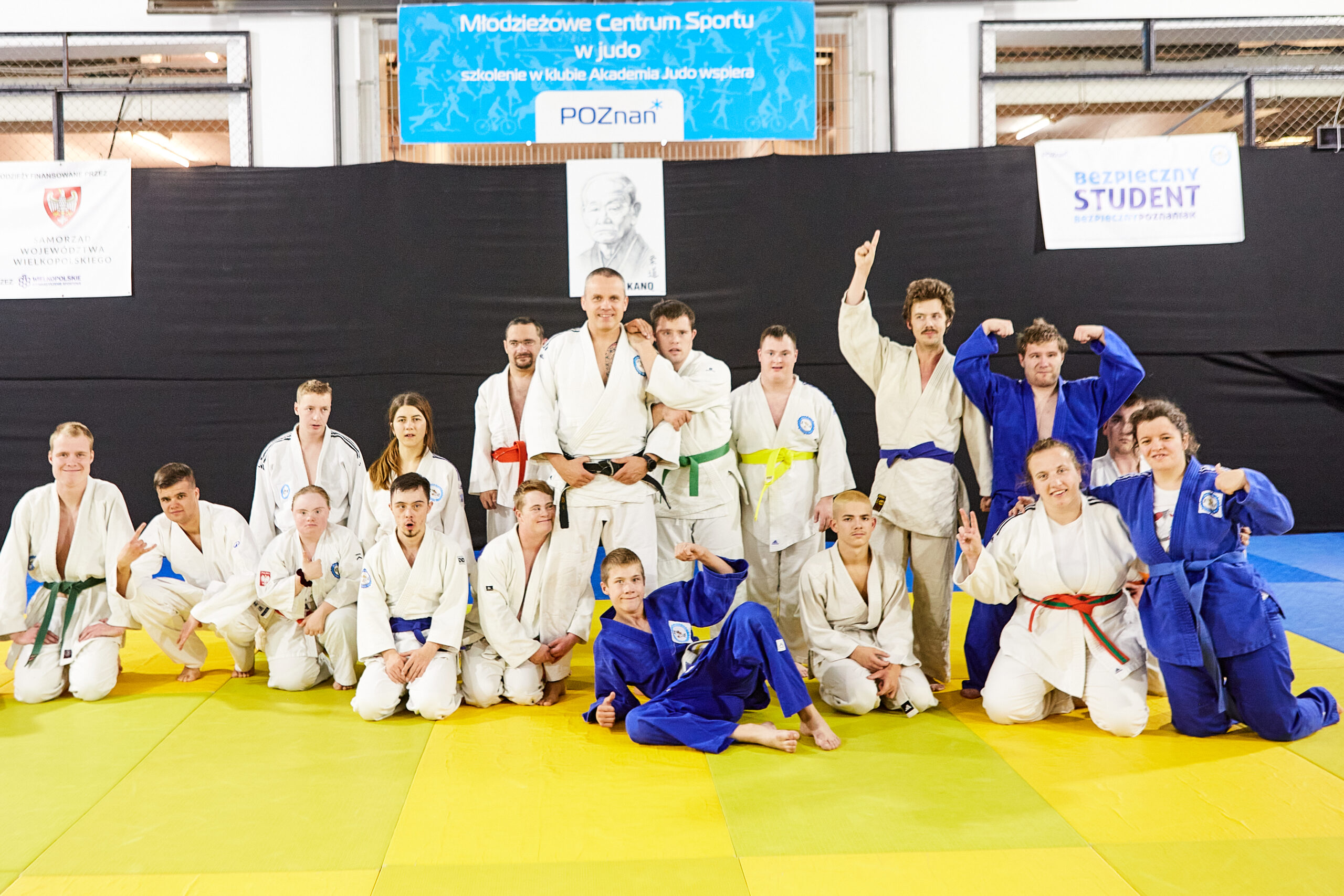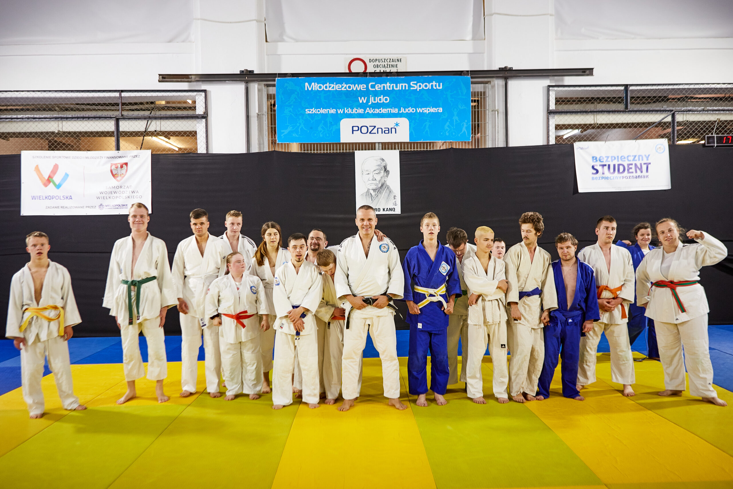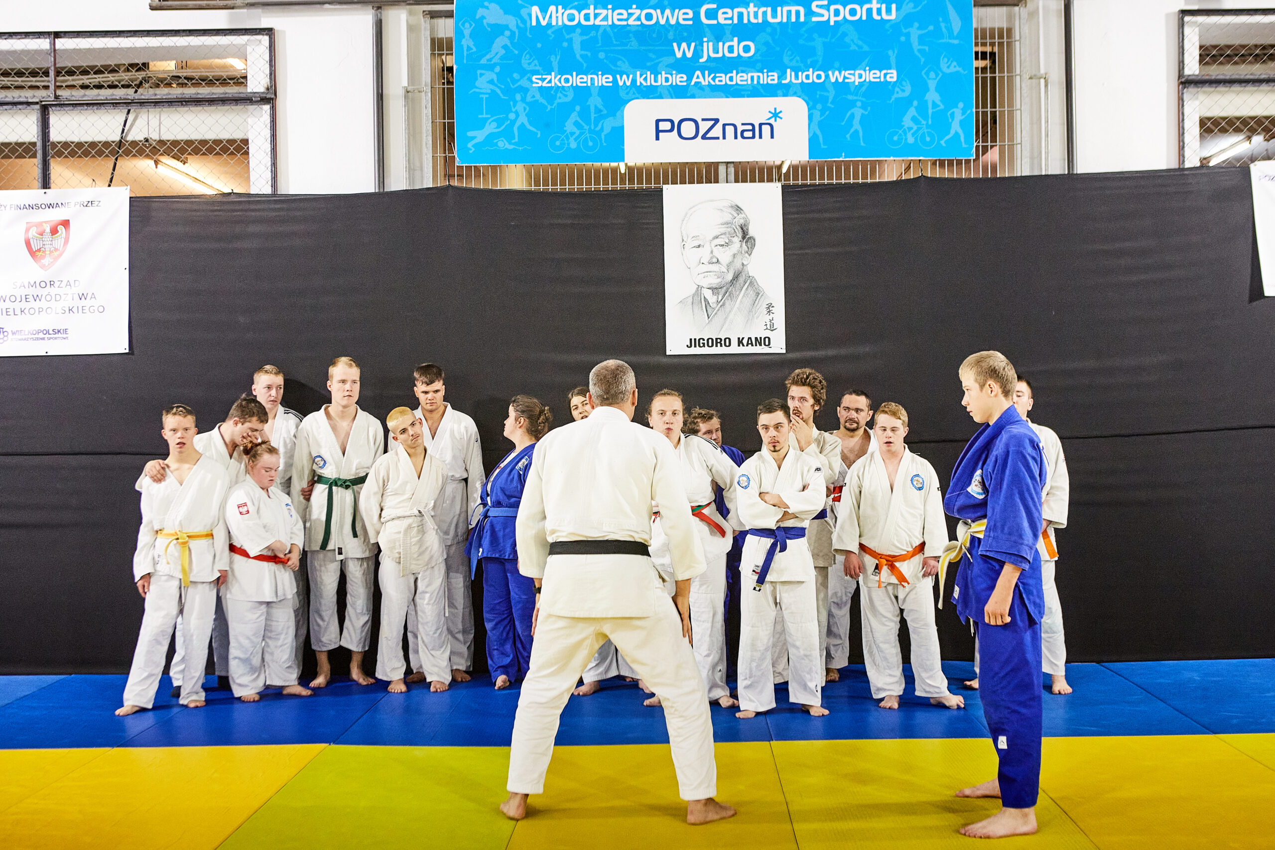 Hala sportów walki na Międzynarodowych Targach Poznańskich. To tam trenuje Akademia Judo dopóki nie zostanie oddane do użytku nowe miejsce przy ul. Jarochowskiego. Sala jest podzielona na trzy części. W jednej trenują przedszkolaki, w drugiej młodzież. Trzecią zajmuje wyjątkowa sekcja. Sekcja osób z niepełnosprawnościami.