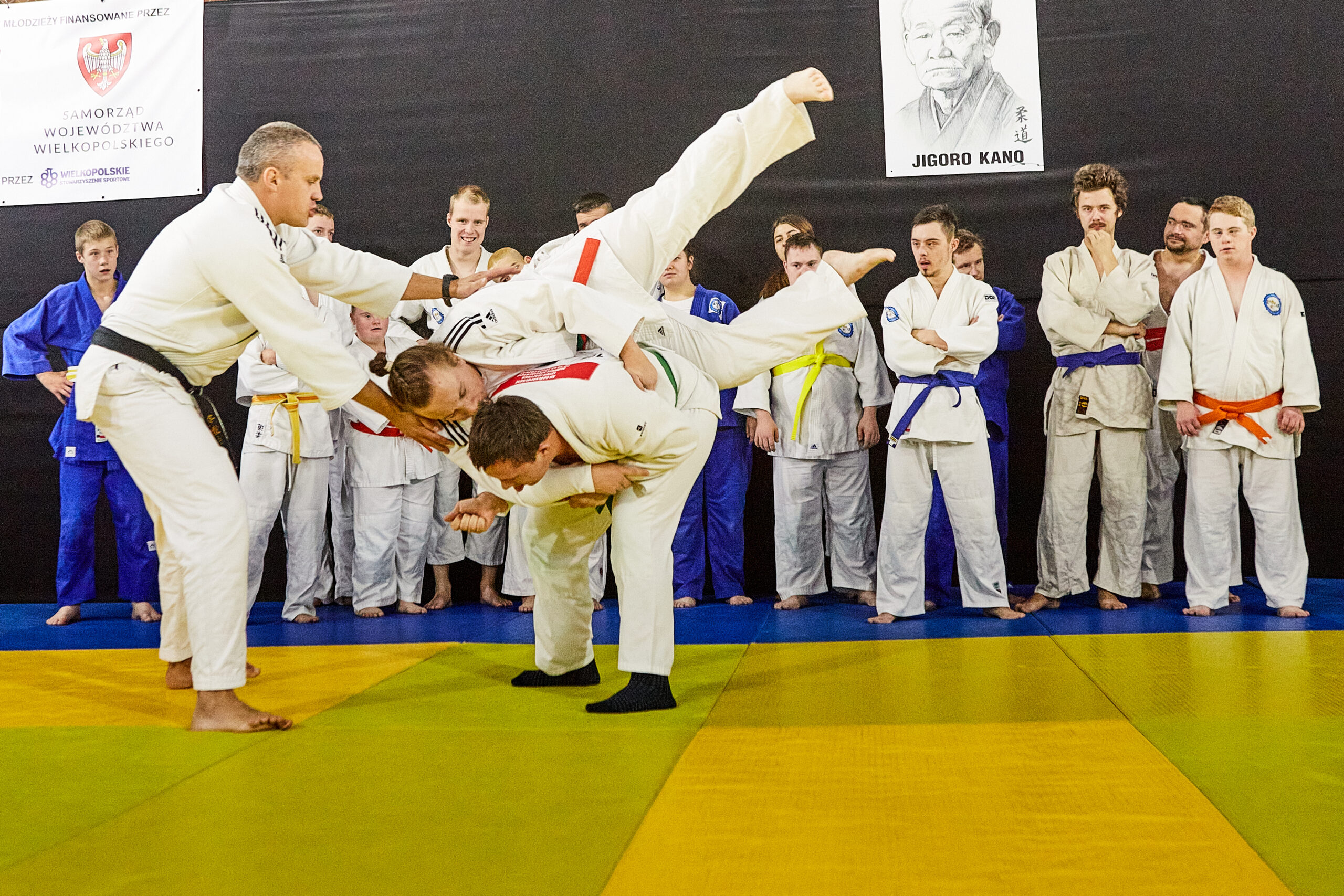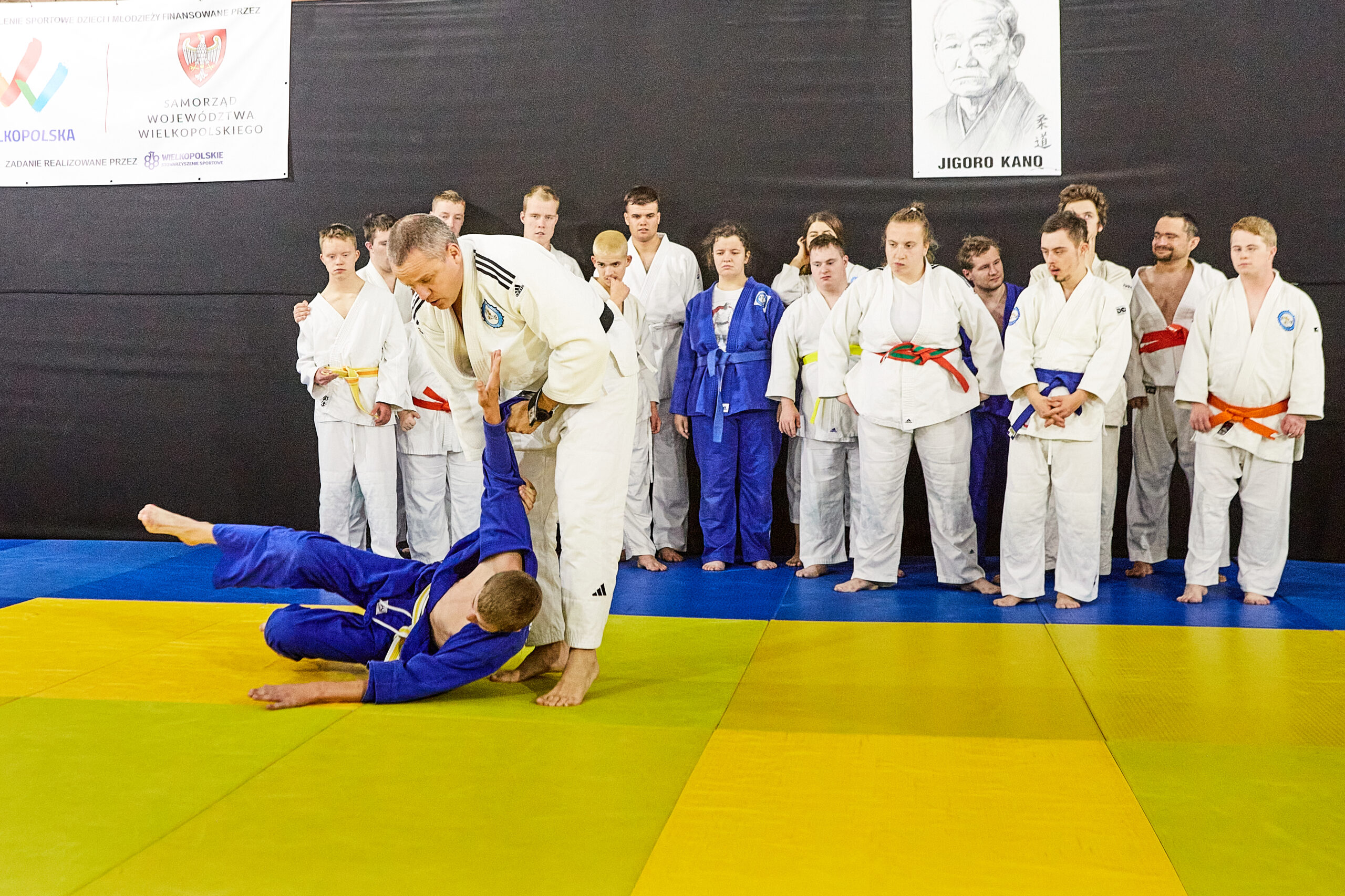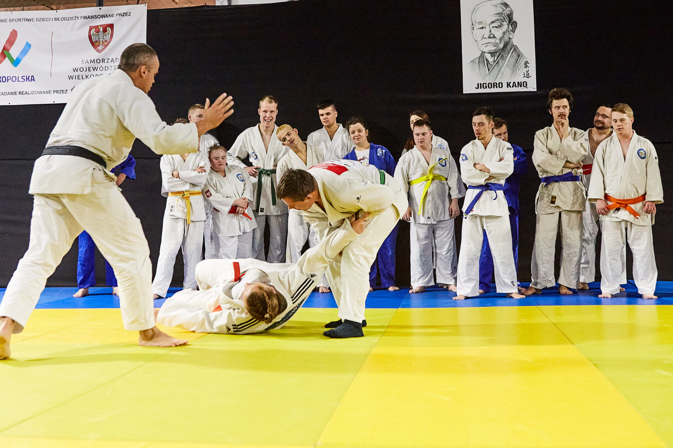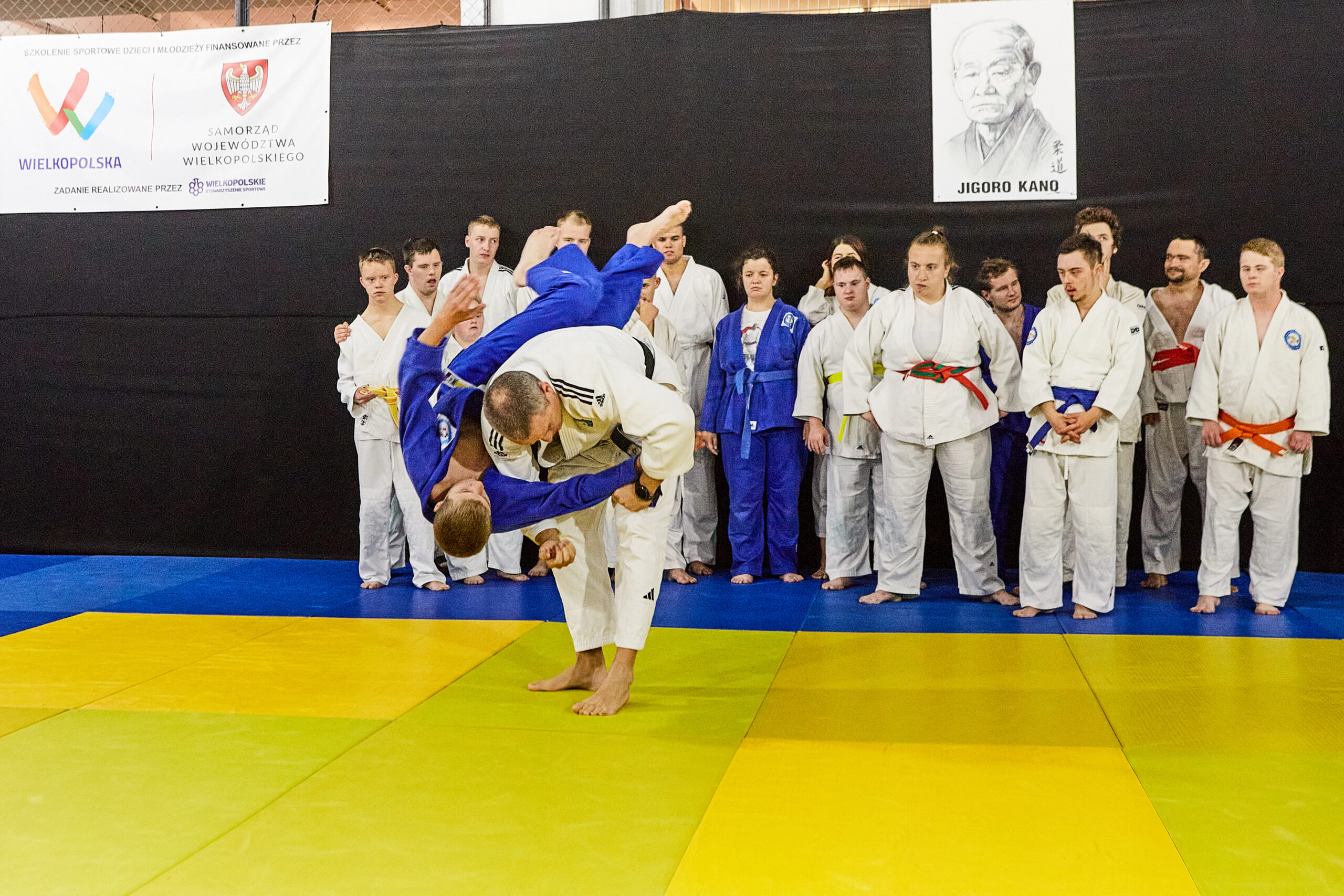 Hala sportów walki na Międzynarodowych Targach Poznańskich. To tam trenuje Akademia Judo dopóki nie zostanie oddane do użytku nowe miejsce przy ul. Jarochowskiego. Sala jest podzielona na trzy części. W jednej trenują przedszkolaki, w drugiej młodzież. Trzecią zajmuje wyjątkowa sekcja. Sekcja osób z niepełnosprawnościami.