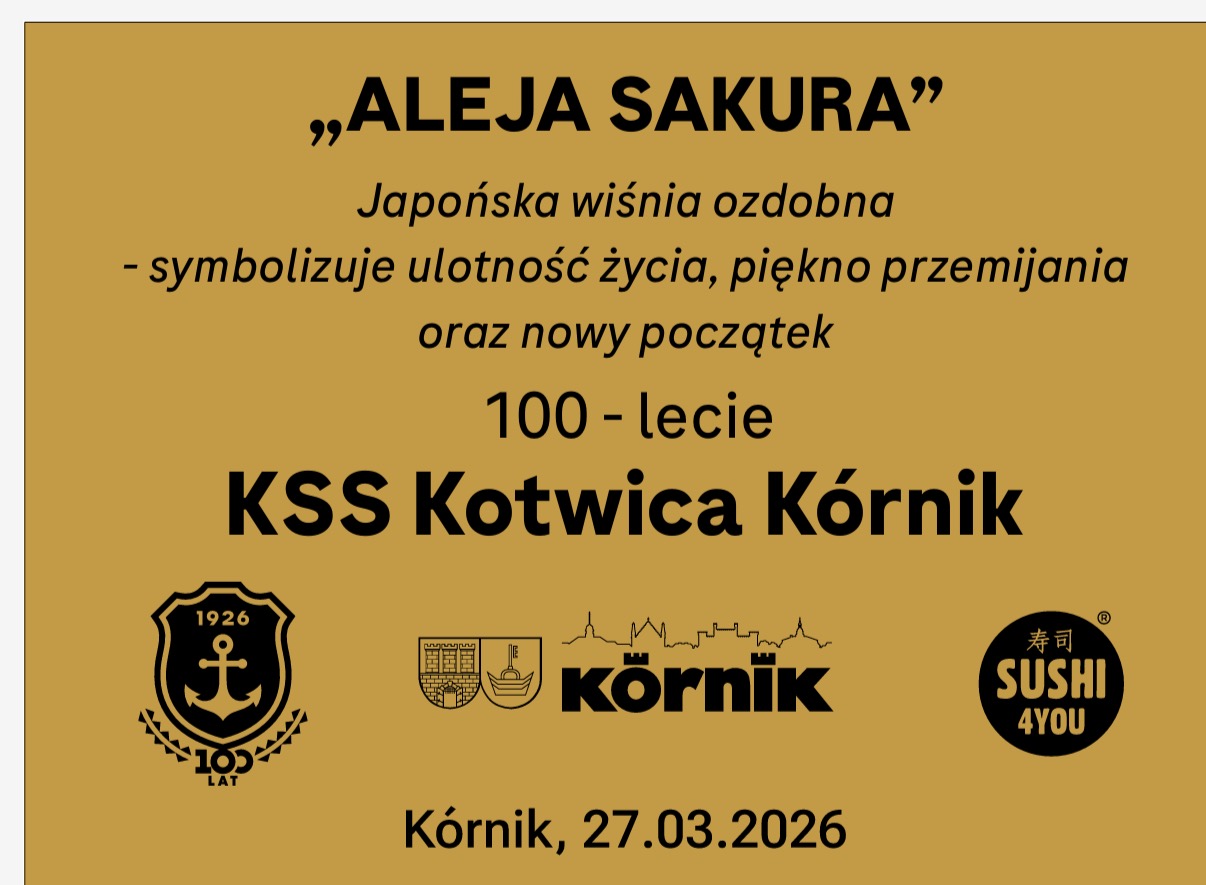 Promenada nad Jeziorem Kórnickim zyskała nową, wyjątkową oprawę. Marka Sushi4You, nowy sponsor klubu Kotwica Kórnik, wspólnie z Władzami Miasta i Gminy Kórnik oraz Szkółkami Kórnickimi, uroczyście zainaugurowała Aleję Drzew Sakura. To pełen symboliki gest z okazji jubileuszu 100-lecia klubu oraz wyraz wdzięczności marki dla lokalnej społeczności.
