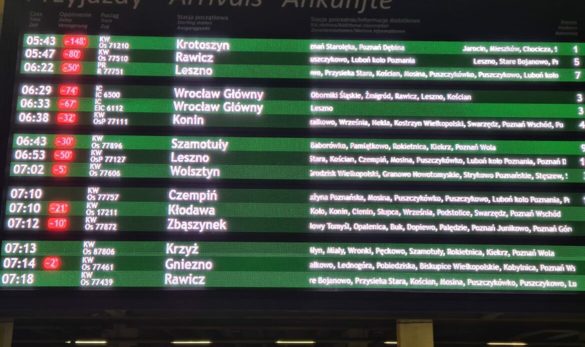Z opóźnieniami zmaga się również kolej. Niektóre pociągi mają ponad godziny poślizg.